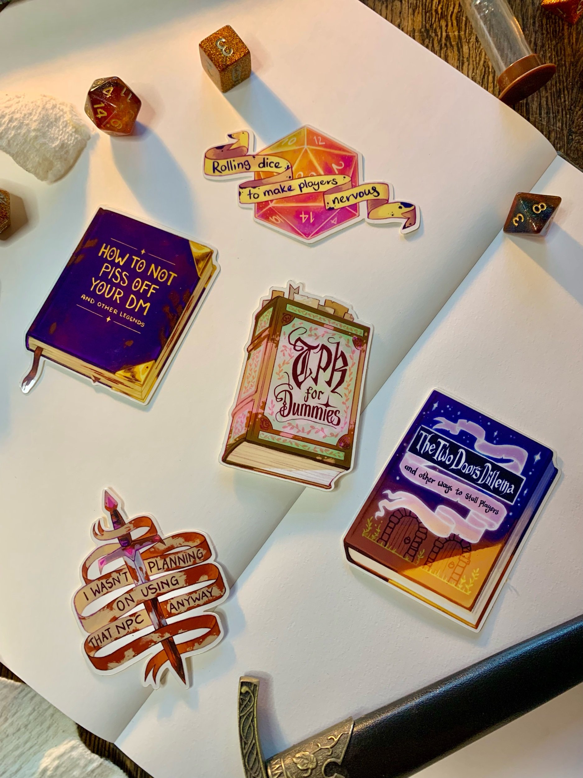 A DnD themed glossy vinyl sticker collection for DM’s. Suited for sketchbooks, notebooks, planners and other dnd related surfaces.